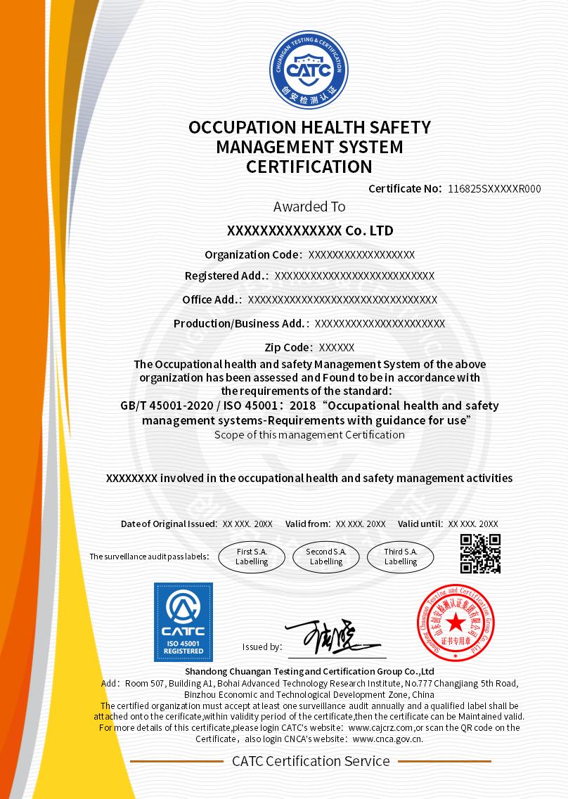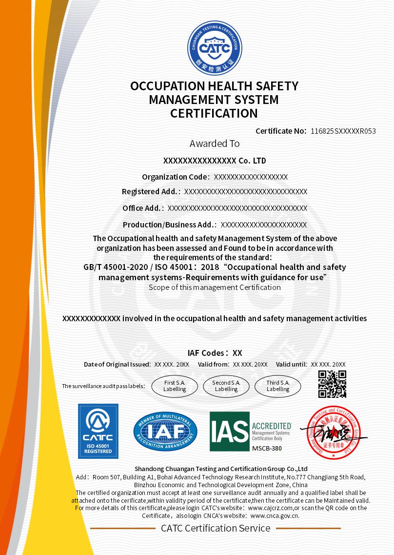4、The applicant organization has established a documented management system in accordance with ISO 45001 standards (including management manuals, procedure documents, a list of internal and external occupational safety accidents in the last 12 months, including government factory safety inspection results, complete internal audit materials, management review materials, etc.)