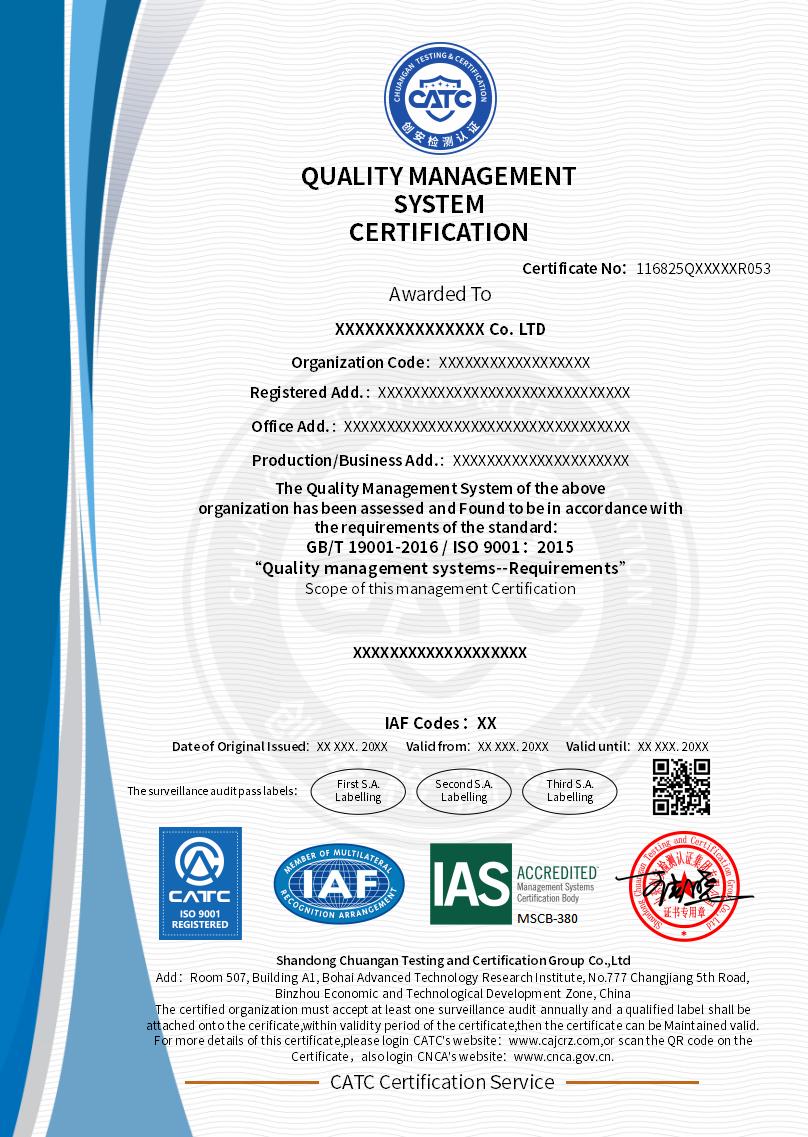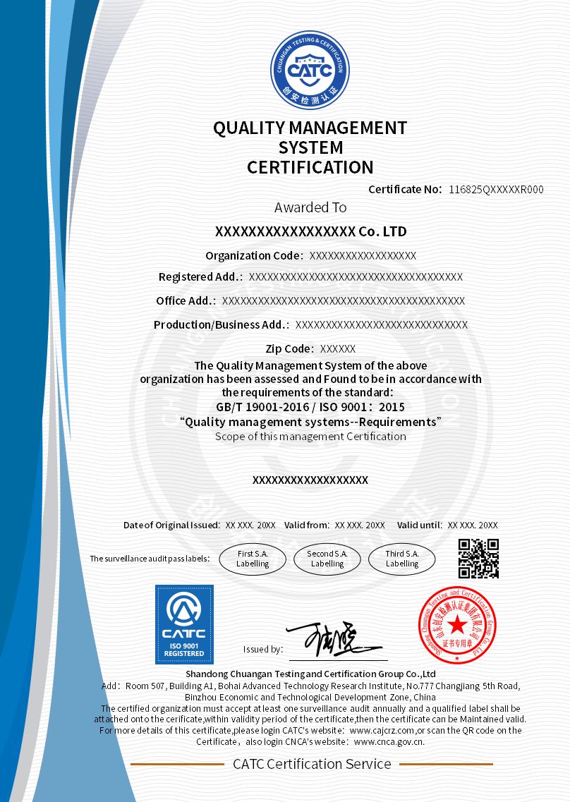 To sum up, ISO 9001 certification is not only a quality management system standard, but also an important tool for enterprises to improve management level, enhance market competitiveness, and cross trade barriers. It helps organizations build a quality management system (QMS) that meets customer needs and, through continuous improvement, ensures that all departments work together efficiently to create greater value for customers. At the same time, its universality across industries and products allows any type of organization to benefit from it and achieve sustainable development.